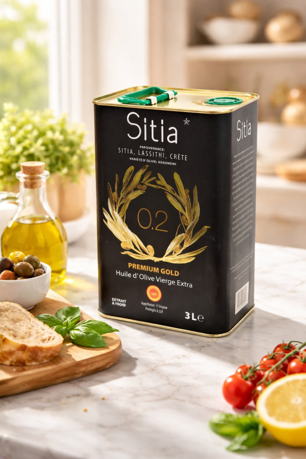 Grecka oliwa z oliwek Extra Virgin Sitia 0,2% 3 l w puszce to wysokiej jakości oliwa z Krety o bardzo niskiej kwasowości 0,2%, tłoczona na zimno i ceniona za świeży, owocowy smak. To praktyczny wariant dla osób, które używają oliwy regularnie i chcą mieć większy zapas do codziennej kuchni śródziemnomorskiej.