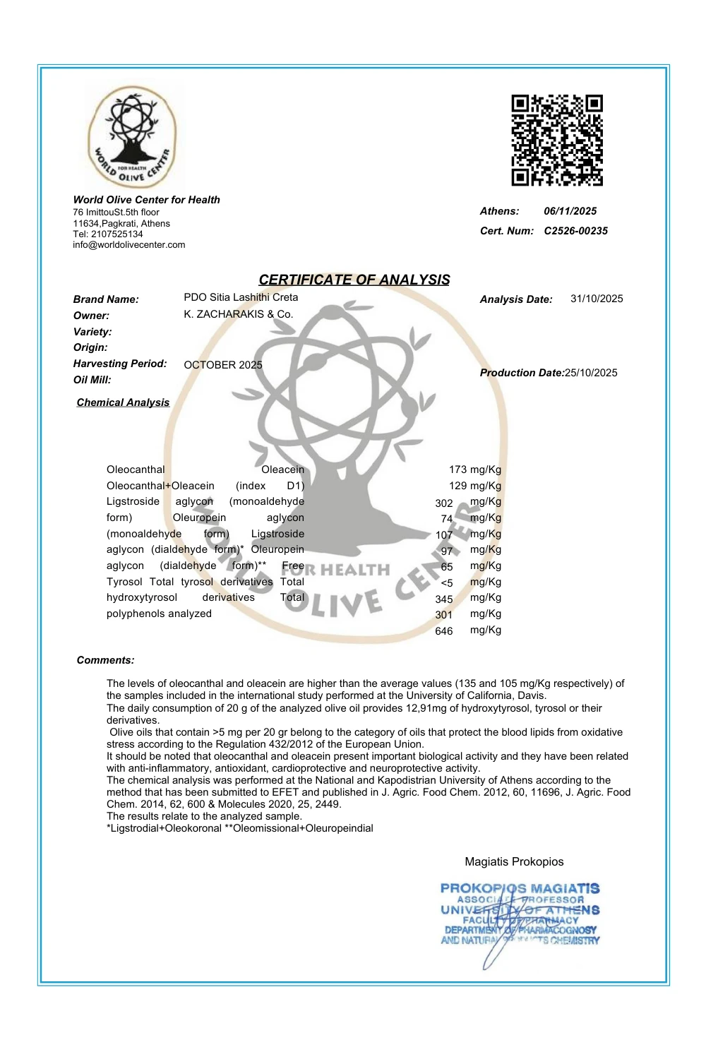 - dla tej oliwy dostępny jest certyfikat analizy