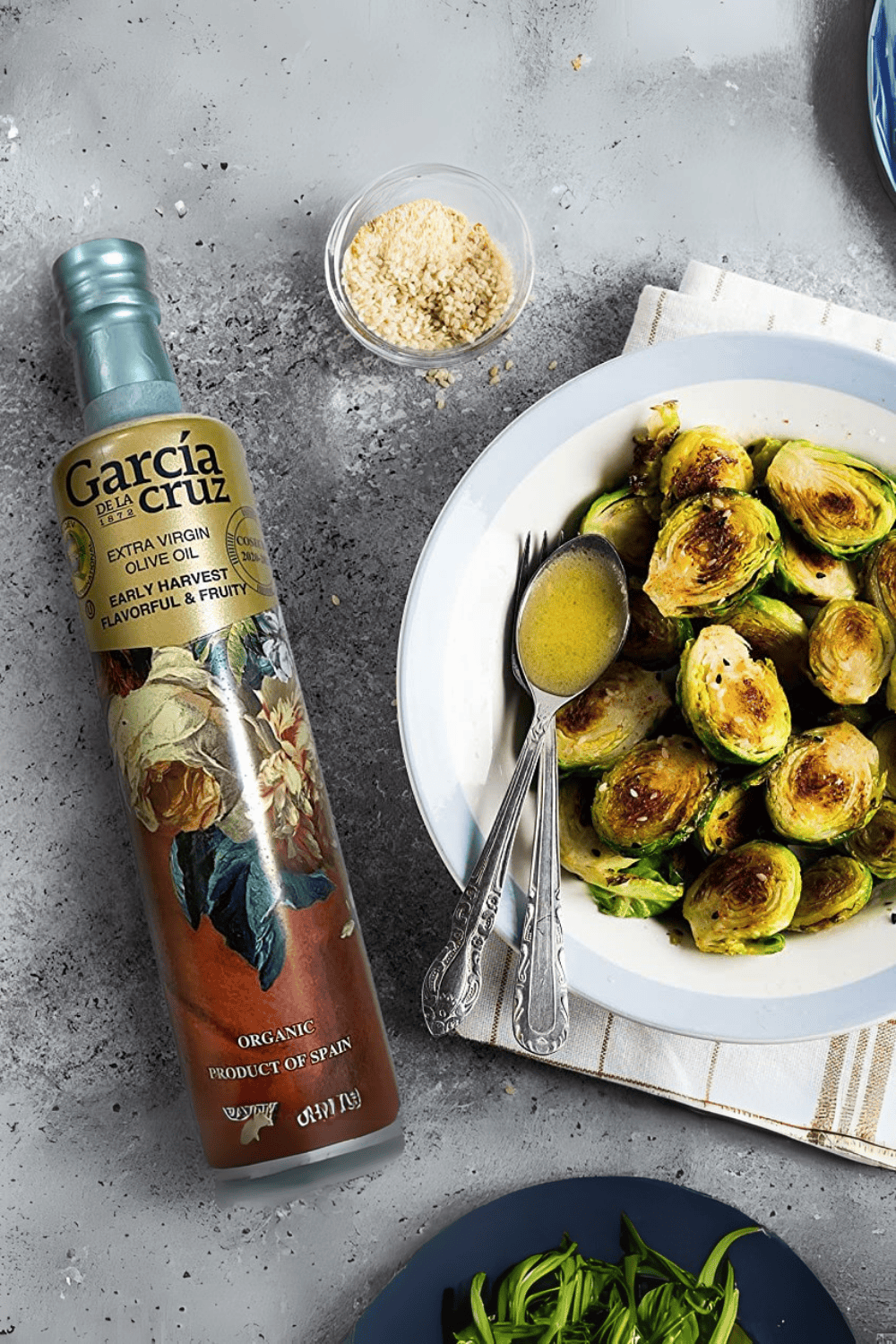 Na uwagę zasługuje też samo opakowanie. Oliwa znajduje się w butelce 500 ml z ciemnego szkła, które pomaga ograniczyć dostęp światła i lepiej chroni zawartość. Dodatkowo butelka ma wygodny dziobek do dozowania, dzięki czemu łatwiej odmierzyć odpowiednią ilość oliwy bez chlapania i bez strat. Charakterystyczna, kwiatowa butelka jest jednym z rozpoznawalnych elementów marki Garcia de la Cruz i podkreśla prezentowy, premium charakter produktu.