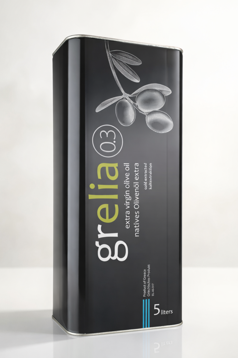 Grelia Extra Virgin 0,3% 5 l to grecka oliwa z oliwek Extra Virgin pochodząca z Krety, z rejonu Heraklionu. Powstaje z 100% kreteńskich oliwek odmiany Koroneiki, która jest ceniona za świeży aromat, dobrą równowagę smaku i charakter typowy dla wysokiej jakości oliwy greckiej. To wariant stworzony z myślą o osobach, które sięgają po oliwę codziennie i chcą mieć pod ręką większą pojemność na dłużej.
